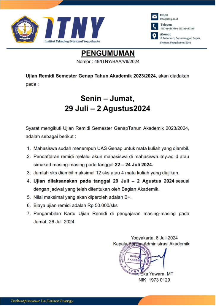 Pengumuman Remidi Semester Genap Tahun Akademik 2023/2024July 9, 2024/in News/by admin ftp https://ftp.itny.ac.id/wp-content/uploads/2024/07/Pengumuman-Remidi_001-728x1030-1.png 1030 728 admin ftp https://ftp.itny.ac.id/wp-content/uploads/2024/05/LOGO-FTP-300x129.png admin ftp2024-07-09 15:56:002024-07-16 07:30:35Pengumuman Remidi Semester Genap Tahun Akademik 2023/2024